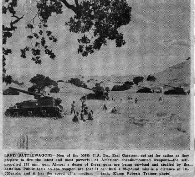 M12's and their crews positioned for action during training exercises.