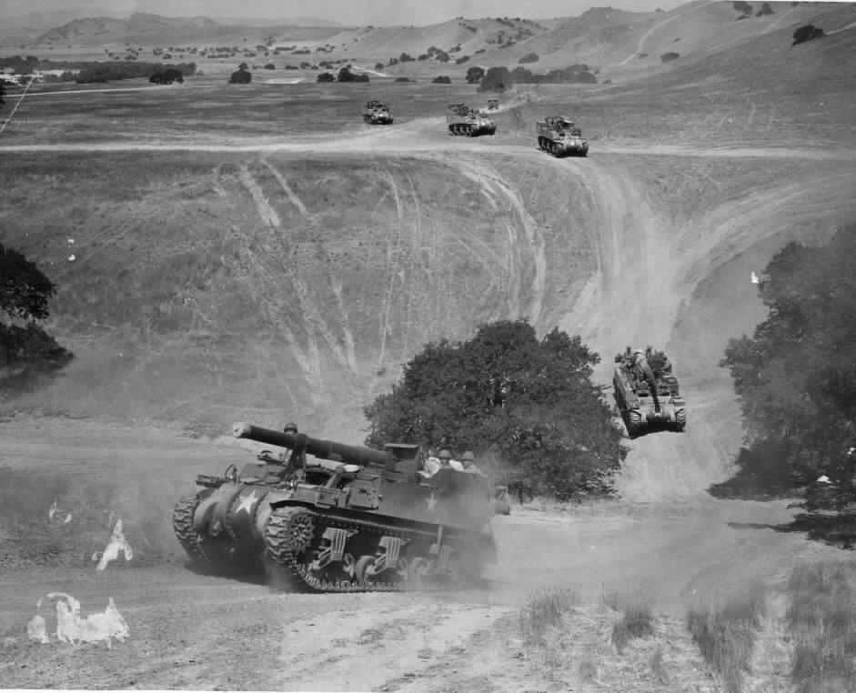Crews mounted and moving out during training.
