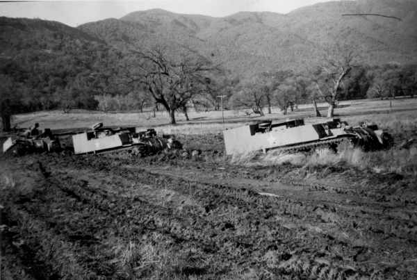 M-30s towing an M-12 at Fort Hunter Liggett, CA, 1943