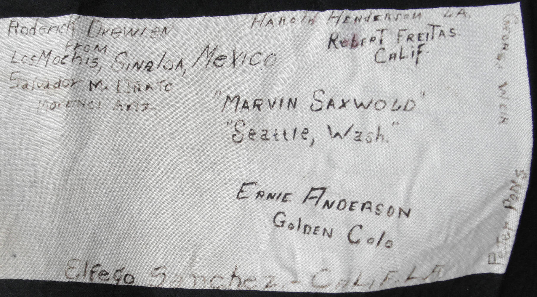 Roderick Drewien from Los Mochis, Sinaloa, Mexico Salvador M. Onate, Morenci, Ariz. Elfego Sanchez, Calif. LA Peter Pons George Wein Harold Henderen, LA Robert Freitas, Calif. Marvin Saxwold, Seattle, Wash. Ernie Anderson, Golden, Colo.